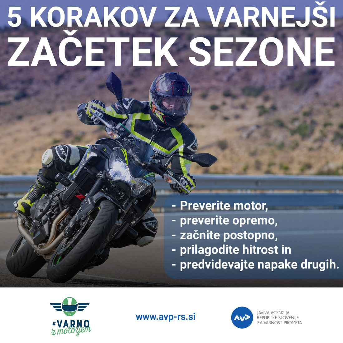 Na Agenciji za varnost prometa ob začetku motoristične sezone znova poudarjajo pomen odgovornega in samozaščitnega ravnanja. Na motor nikoli ne sedite utrujeni ali nepripravljeni, saj takrat niste popolnoma osredotočeni na vožnjo – zbranost pa je pri upravljanju motornega kolesa ključna.